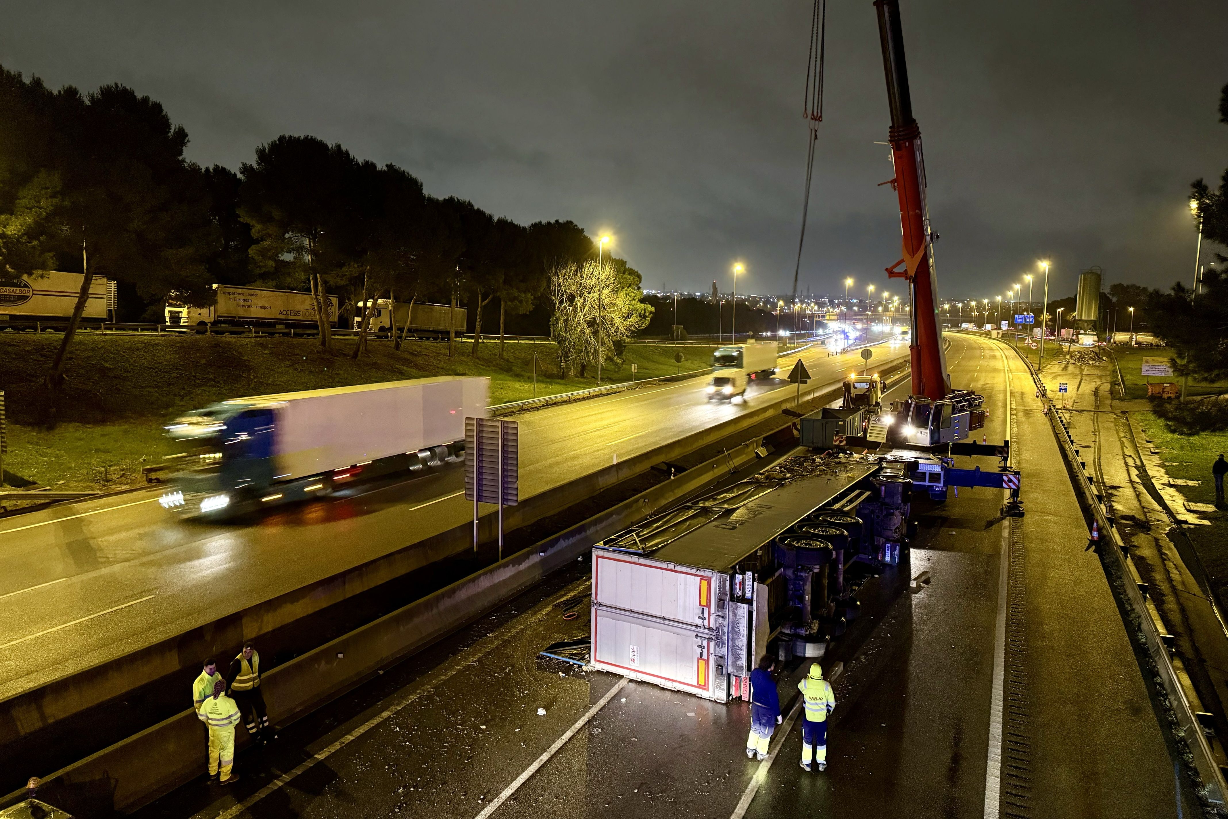 VÍDEO | Un camió carregat d’alls crema a l’AP-7 al Vendrell i obliga a tallar l’autopista en sentit Barcelona