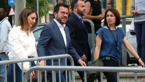 El candidat d'ERC a les eleccions d'aquest 12-M, Pere Aragonès, ha arribat a l'Estació del Nord a les 19:45 hores per fer seguiment de la nit electoral. El president del Govern i candidat a la reelecció ha entrat acompanyat de la seva dona a l'espai on ERC esperarà els resultats dels comicis.
