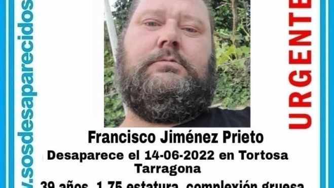 L'Associació SOS Desapareguts sol·licita la col·laboració ciutadana per a trobar a Francisco Jiménez Prieto, un home de 39 anys de Barcelona que va desaparèixer el passat 14 de juny a Tortosa, província de Tarragona. Els seus familiars i amics no tenen notícies d'ell des de fa sis dies.