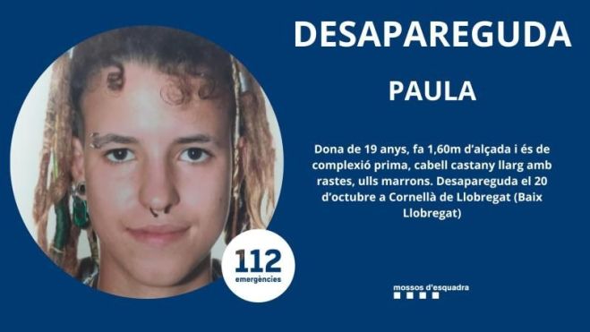 La jove va ser vista per darrer cop el divendres 20 d'octubre. Fa 1,60 cm d'alçada, té els ulls marrons, de complexió prima i té el cabell castany llarg amb rastes.