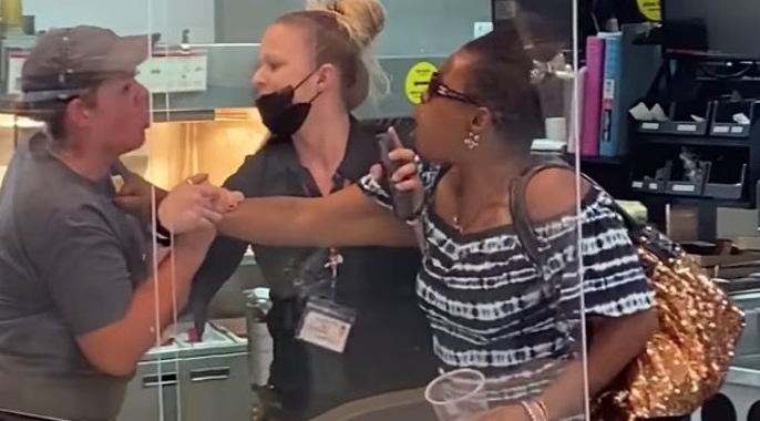 La dona demana que li barregin els sabors del granissat, quan li comuniquen que no pot fer-ho entra a la cuina i se n'encarrega ella mateixa. Els empleats la detenen i ella comença a insultar-los fins que l'enfrontament arriba a les mans i la clienta comença a pegar al personal.