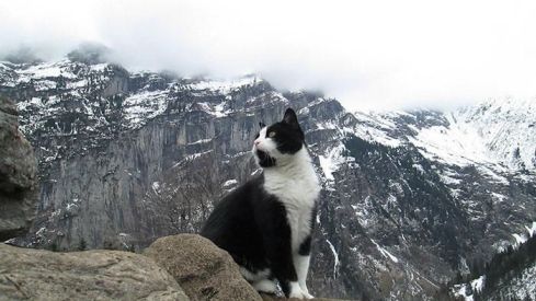 Un paradís amagatNomés té 130 habitants i és un destí paradisíac, lliure de trànsit, ja que només es pot arribar allí a peu. Es troba al límit de l’Àrea protegida Jungfrau-Aletsch als Alps suïssos. Muntanyes, neu, cel blau i molt verd, però en aquest moment per al turista era una cel·la que el tenia tancat i amenaçava la seva vida. Fins que va aparèixer un moggy blanc i negre.