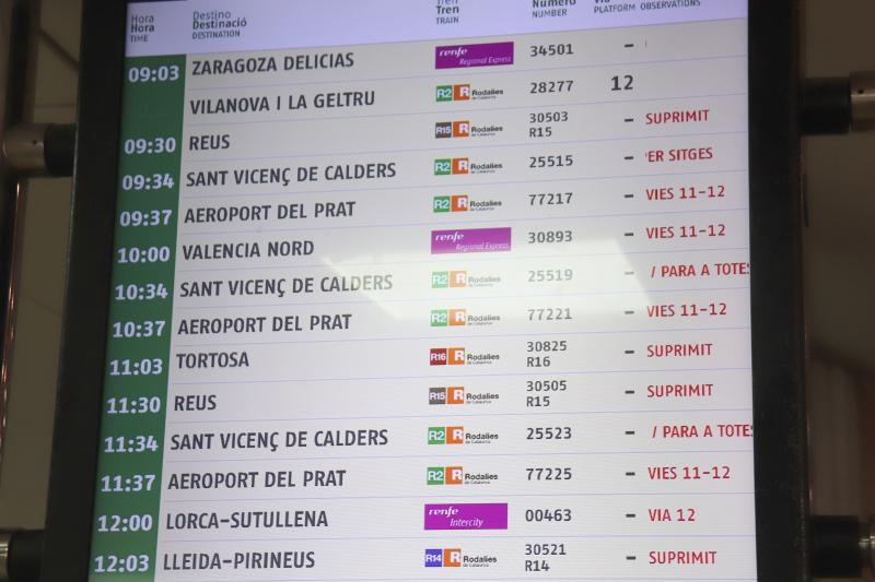 Els serveis mínims han fixat que a les hores punta circulin dos de cada tres trajectes programats, mentre que en la resta de la jornada es mantenen un de cada tres trens.