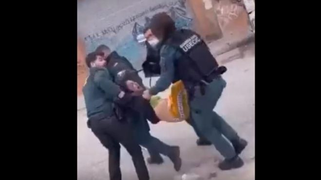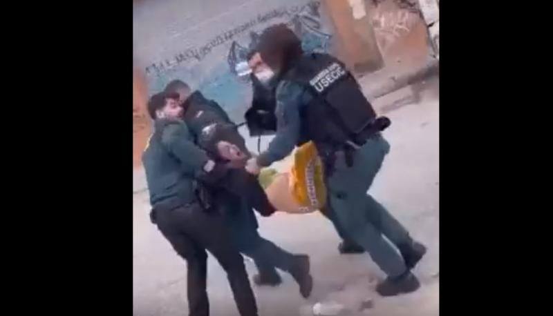 Les imatges mostren com diversos joves insulten, increpen i llancen ampolles a un grup d'agents de la Guàrdia Civil, i els obliguen a retrocedir i reagrupar al costat d'un dels seus vehicles. Els joves continuen avançant, causant danys al mobiliari urbà i llançant objectes.