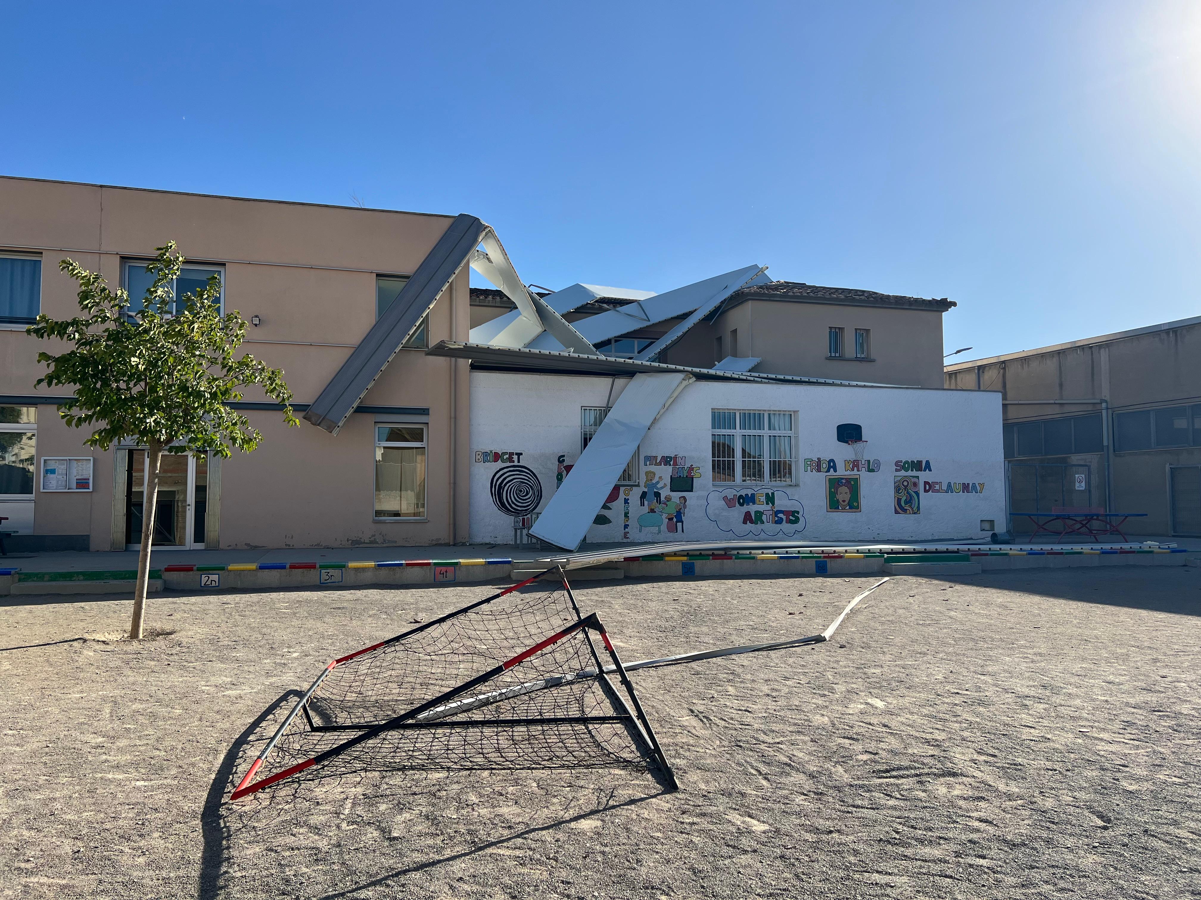 Un dels episodis més destacats s’ha viscut a Anglesola (Urgell), on el vent ha arrencat part del sostre del pavelló municipal i l’ha fet caure sobre l’escola Santa Creu, situada al costat. L’estructura ha provocat danys materials, però no hi ha hagut ferits. Tres dotacions dels Bombers han evacuat els alumnes i s’ha avisat les famílies per recollir-los. A Tàrrega, també s’ha desallotjat preventivament l’escola Vedruna pel despreniment de plaques del pavelló adjacent.