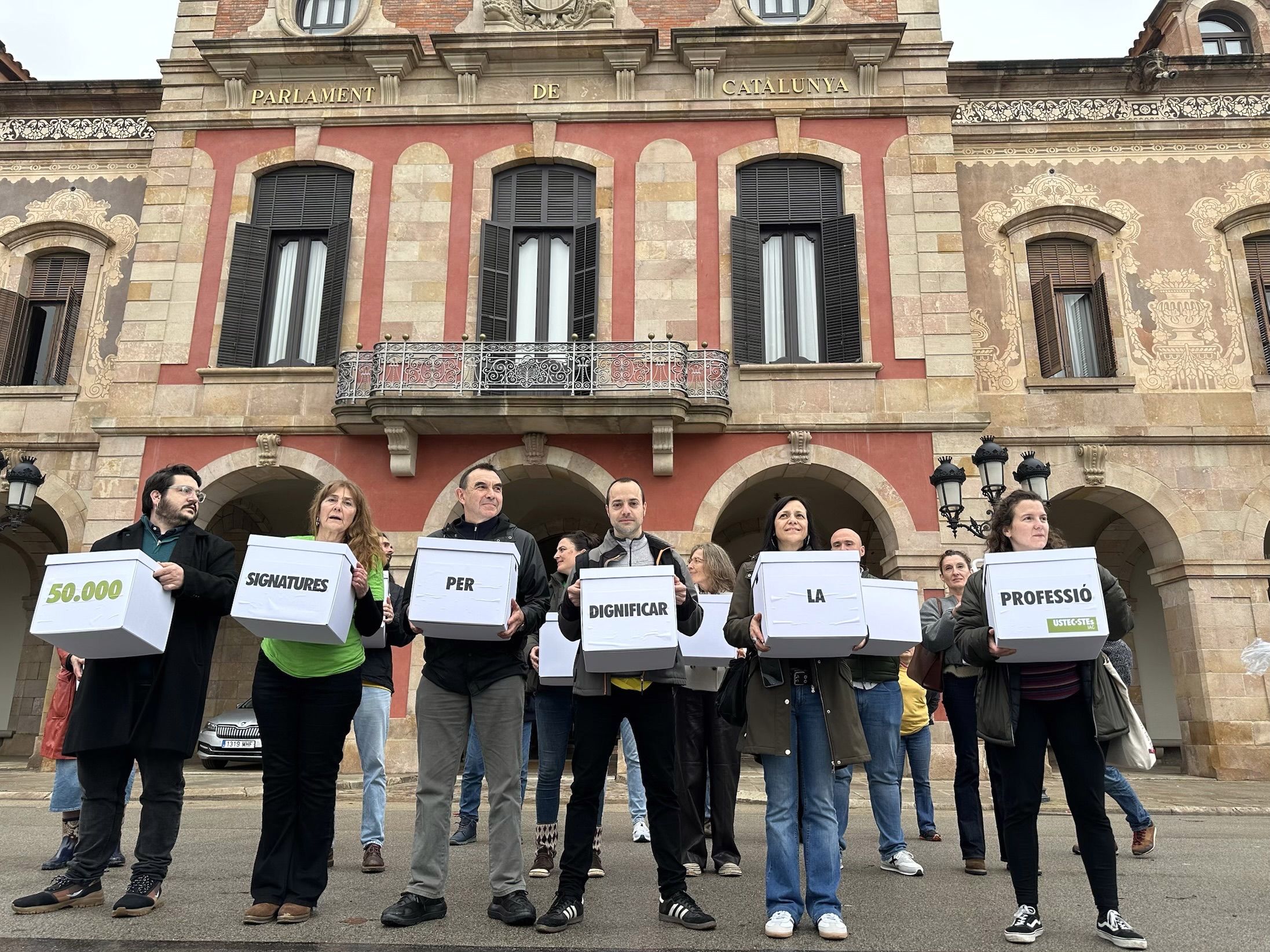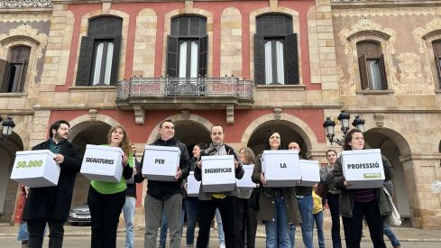 L’entrega de signatures posa punt final a la campanya “Dignifiquem la professió”, impulsada pel sindicat durant l’últim curs. Les caixes amb els fulls signats s’han lliurat al Parlament després d’una recollida iniciada el curs passat amb l’objectiu d’obtenir el suport majoritari del professorat.