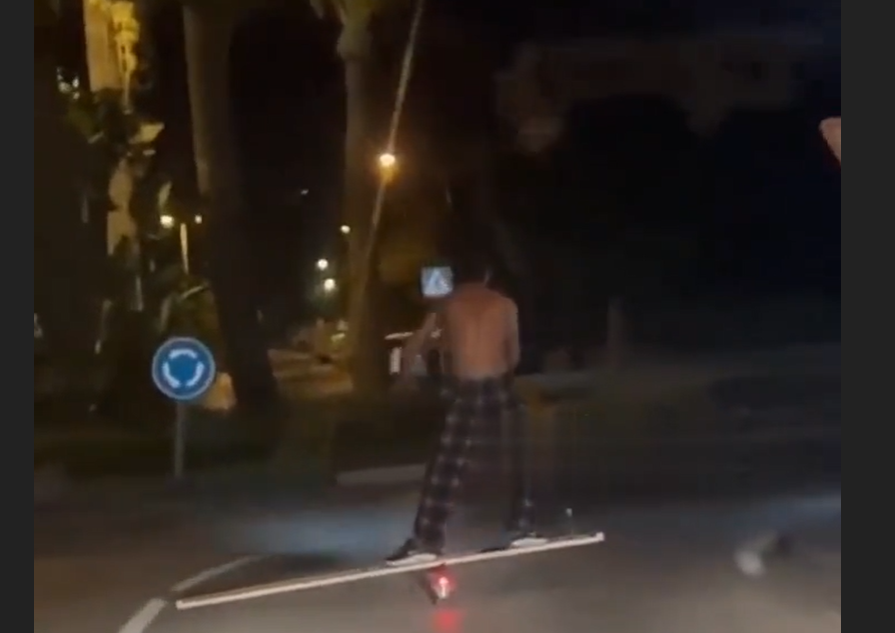 Aquest vídeo s'ha fet viral a les xarxes socials. Mostra com un home circula en un patinet elèctric en pijama i damunt d'una taula.No se saben el motiu dels fets, però sembla que volia portar aquesta taula a qualque lloc de Marbella, Màlaga.