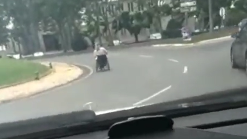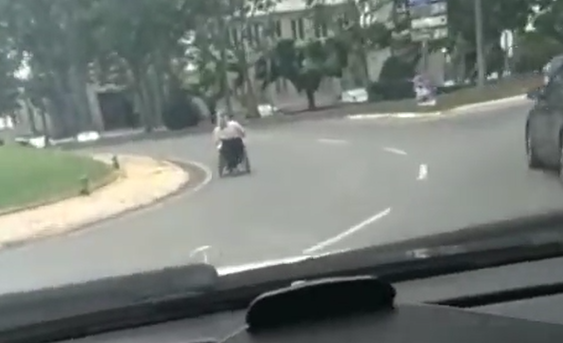 Aquest vídeo s'ha fet viral a les xarxes socials. Mostra com una dona amb cadira de rodes va pel carril interior d'una rotonda com si fos un vehicle més.