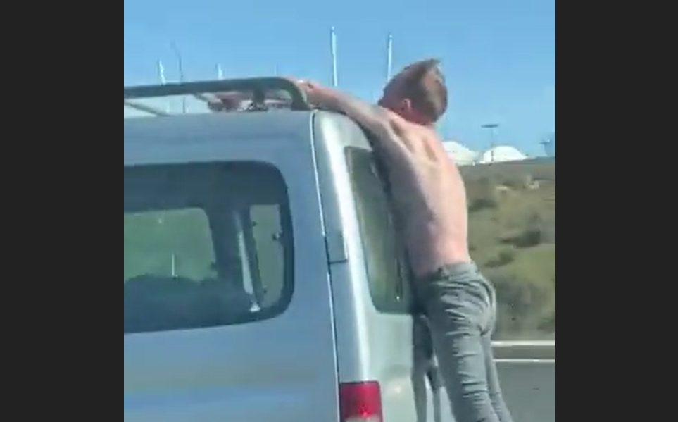 VÍDEO: Se subjecta a la part del darrere d'una furgoneta en marxa a l'autovia