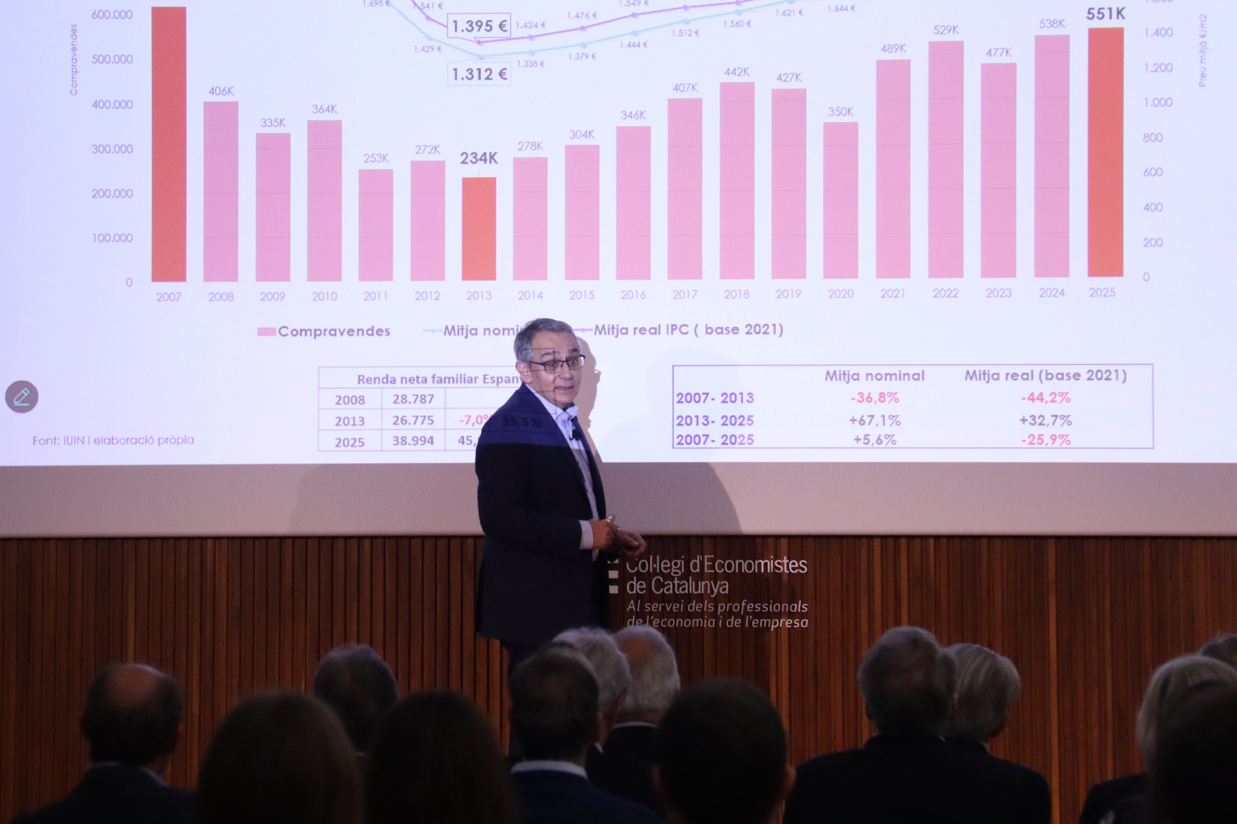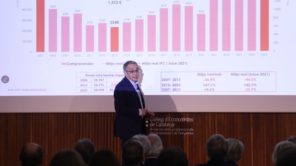 Los datos forman parte del informe ‘Radiografía del mercado de la vivienda en Cataluña 2007-2025’, elaborado a partir del Portal Estadístico del Notariado y presentado este viernes en el Colegio de Economistas. Según el estudio, el 12% de las viviendas vendidas por personas jurídicas han ido a parar a particulares, una proporción superior a la media estatal.