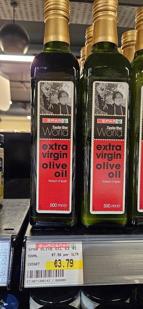 Un vecino de Tarragona que ha viajado recientemente a Irlanda se quedó muy sorprendido cuando visitó un Eurospar y se encontró una botella de medio litro de aceite de oliva virgen, en un envase de vidrio, por 3,79 €. En total, el litro está por 7,58 €, muy por debajo de su precio en España. El resto de productos eran mucho más caros, llegando a pagar 2,5 € por una botella de agua de 1,5 litros.
