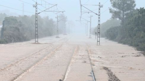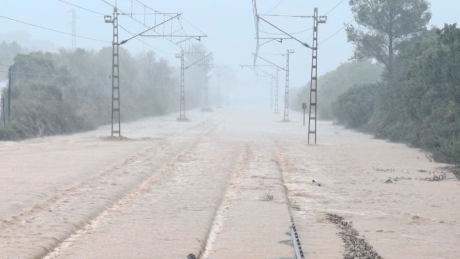 Renfe ha suspendido temporalmente todas las salidas de trenes con origen o destino Barcelona y Valencia a lo largo del Corredor Mediterráneo, después de que la AEMET (Agencia Estatal de Meteorología) haya emitido un aviso rojo por lluvias torrenciales y viento intenso en la zona del litoral sur de Cataluña y el norte del País Valenciano.