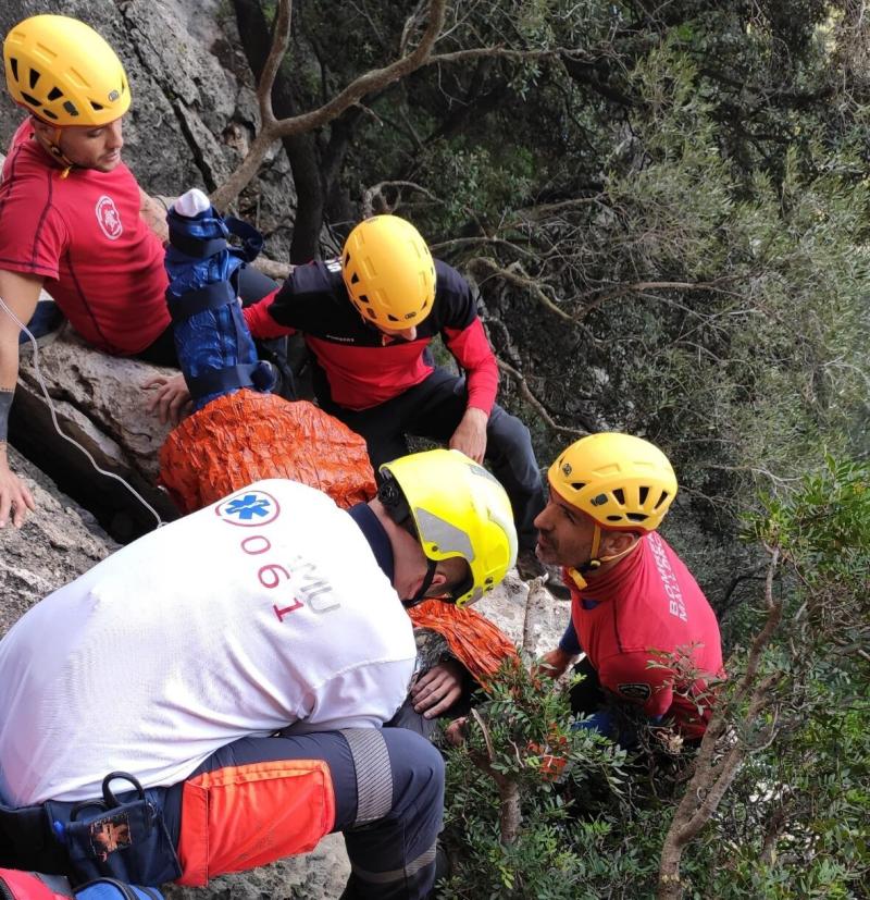 Al avisar a emergencias para pedir asistencia, acudieron los servicios sanitarios, el Grupo de Rescate e Intervención en Montaña (Greim) y la Policía Local, ayudándose de un helicóptero para facilitar el rescate.
