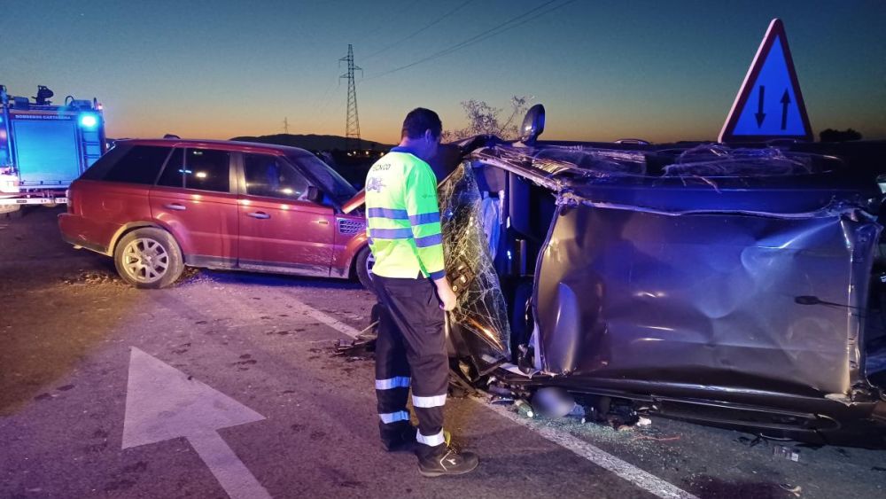 Una mujer de 64 años ha fallecido y varias personas han resultado heridas este sábado por la noche en un accidente de tráfico que ha tenido lugar en la carretera RM-602, a la altura de Cartagena. El accidente, que ha tenido lugar antes de la incorporación a la A-30, ha implicado a dos vehículos que han chocado frontalmente, uno de los cuales ha acabado volcando en medio de la vía.