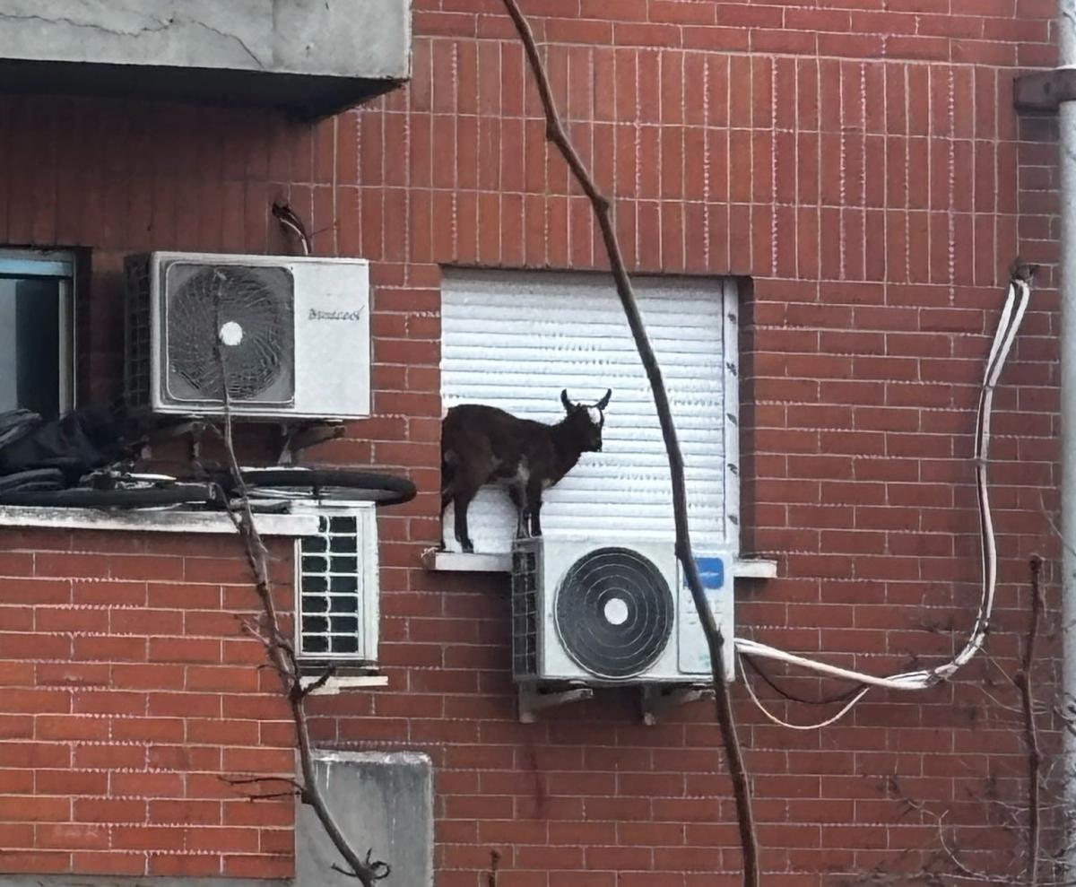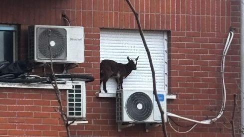 Los bomberos están más que acostumbrados a ver incendios y accidentes, pero lo que los de la Comunidad de Madrid se encontraron el pasado martes es del todo inusual. Un vecino de la calle de la Puebla de Sanabria, en el distrito de Villaverde, les avisó de que había una cabra trepada en una ventana de un quinto piso.