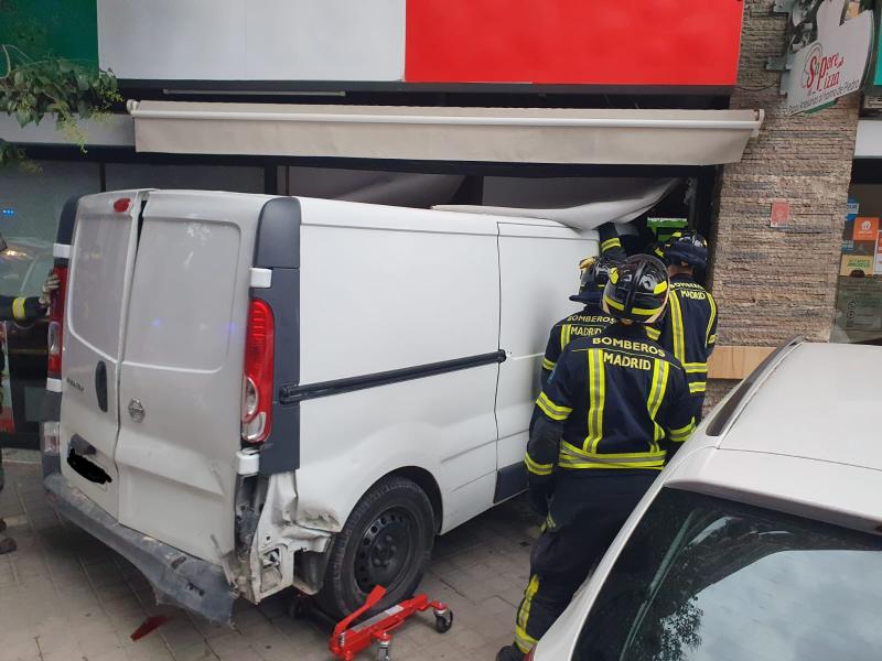 Un accidente entre tres vehículos ha provocado que dos de ellos acabaran empotrados en el interior de un local. Se trata de una furgoneta y un turismo que fueron chocados en cadena por otro turismo, del que el conductor perdió el control.Los hechos han tenido lugar en el barrio de Salamanca de Madrid.