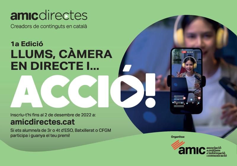 "AMIC-Directes, creadores de contenidos en catalán" es un concurso de creación de streamings en línea para jóvenes, que da el pistoletazo de salida por primera vez, buscando a los que serán los próximos streamers de habla catalana. Las inscripciones están abiertas para estudiantes de segundo ciclo de ESO, Bachillerato y CFGM de los diferentes territorios de habla catalana. Desde el 27 de septiembre de 2022 y hasta el 2 de diciembre de 2022 los estudiantes que quieran participar pueden registrarse a través de la web www.amicdirectes.cat.