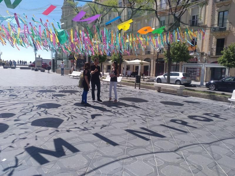 Los puntos del Minipop ya han empezado a aparecer en la Rambla Nova de Tarragona. En el cielo hay puntos de diferentes tamaños y colores y en el suelo la sombra avisa a los peatones para que levanten la mirada.
