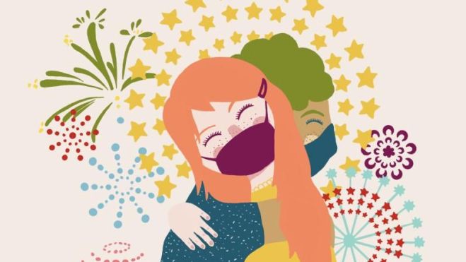 En el diseño dos personas, después de mucho tiempo, se reencuentran con un abrazo muy dulce y ambas llevan mascarilla, "sin duda ha sido, y será, lo más significativo de este año", ha asegurado Isabel.