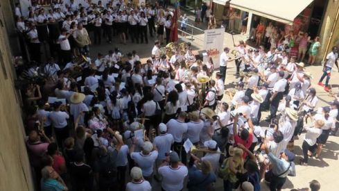 Esta mañana han participado en un pasacalle festivo que ha salido de dos puntos del Eje Comercial (las calles Sant Antoni y Pi i Margall), para reencontrarse en la plaza Paeria, donde han hecho la entrada musical, primero, para finalizar con una interpretación conjunta de todas las agrupaciones.