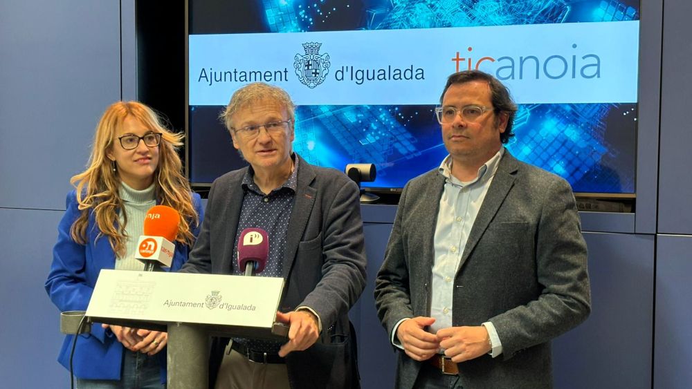 El Ayuntamiento de Igualada ha presentado hoy el plan que se está elaborando conjuntamente con TIC Anoia para la implantación de la Inteligencia Artificial en diversos ámbitos de la ciudad. En una comparecencia que ha contado con el concejal de Movilidad y Entidades, Miquel Vives, la concejala de Innovación, Patrícia Illa y el presidente de la asociación TIC Anoia, Jaume Balcells, se ha explicado que el Ayuntamiento quiere tomar la bandera de esta tecnología para transformar la ciudad, la administración pública y el tejido productivo en el ámbito local.