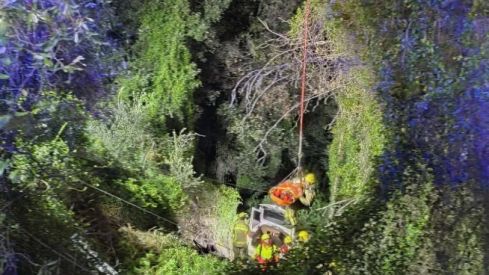 Afortunadamente, pocos minutos después de llegar los especialistas han encontrado el vehículo al fondo del barranco y han podido rescatar con vida al único ocupante. Por suerte e incomprensiblemente teniendo en cuenta la brutalidad del accidente, el hombre solamente había sufrido lesiones leves y continuaba consciente.