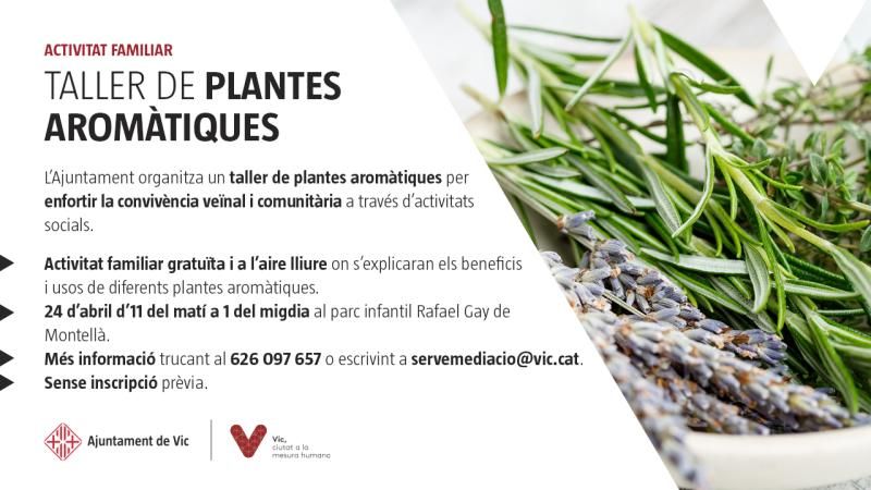 Con el propósito de seguir trabajando por una ciudad con buena convivencia y cohesión social, el Ayuntamiento de Vic organiza un taller de plantas aromáticas relacionado con la primavera y el día de Sant Jordi.