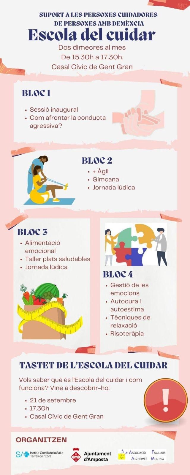 Este jueves 21 de septiembre, coincidiendo con el Día Mundial del Alzheimer y para dar a conocer esta herramienta a la ciudadanía, se ha organizado una Degustación de la Escuela del Cuidar, una jornada en la que se explicará qué es la Escuela y cómo funciona. Será en el Casal Cívico de Personas Mayores Ruiz Salgado de Amposta, a las 17.30 h.