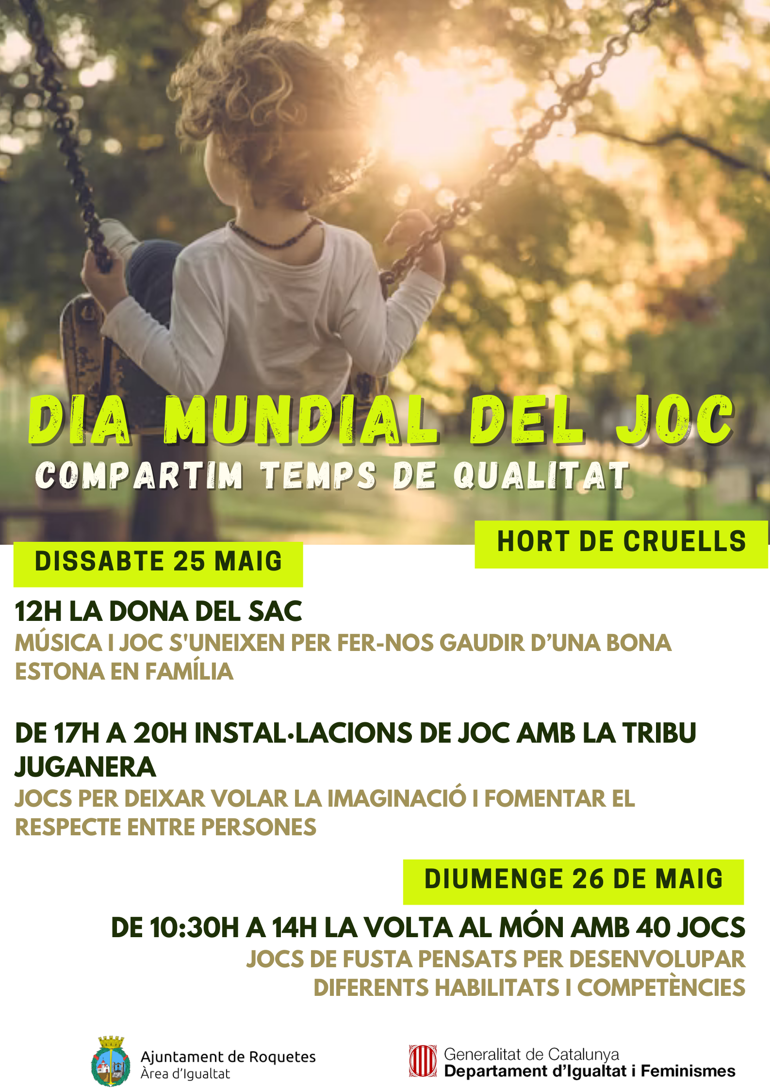 Roquetes dedicará, por tercer año consecutivo,un fin de semana a la diversión y aprendizaje de los más pequeños. L'Hort de Cruellsserá el escenario los próximos días 25 y 26 de mayo de un programa cargado de actividades, dirigido tanto a los niños como a sus familias.