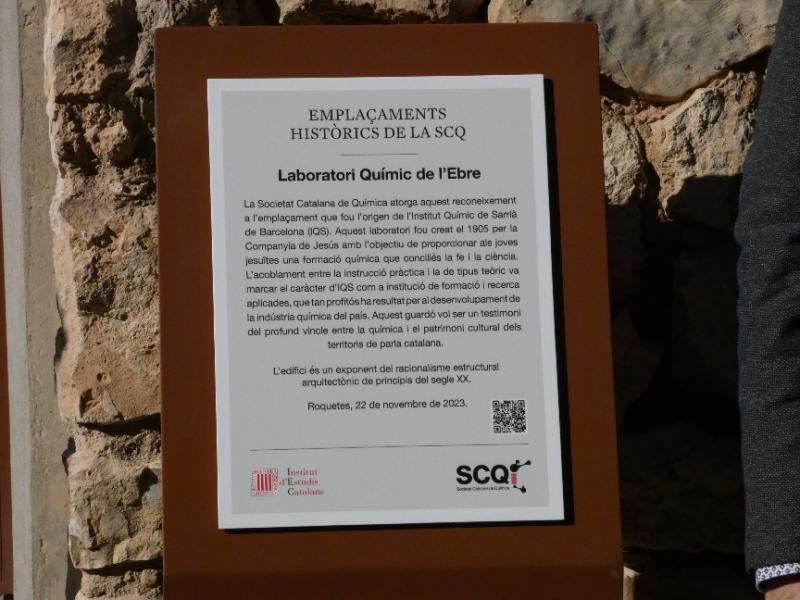 El antiguo edificio de La Ibérica de Roquetes ha recibido el reconocimiento de la Sociedad Catalana de Química como Emplazamiento Histórico Representativo de la Química en el Territorio de Habla Catalana de la edición 2023.