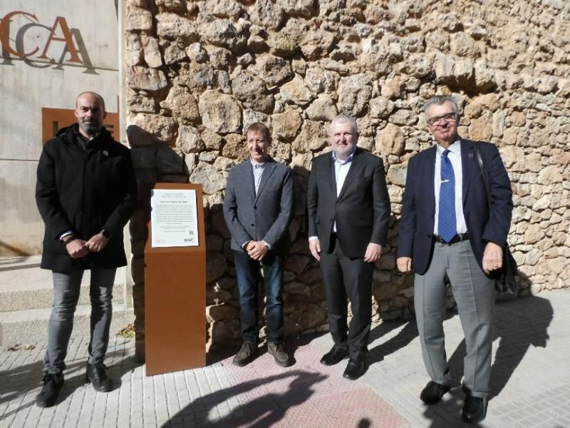El alcalde de Roquetes, Ivan Garcia, junto con el director general del Instituto Químico de Sarrià, Salvador Borrós, el secretario general del Instituto de Estudios Catalanes, Àngel Messeguer, y el presidente de la Sociedad Catalana de Química, Gregori Ujaque; han descubierto la placa conmemorativa que, a partir de hoy, presidirá la entrada del edificio.