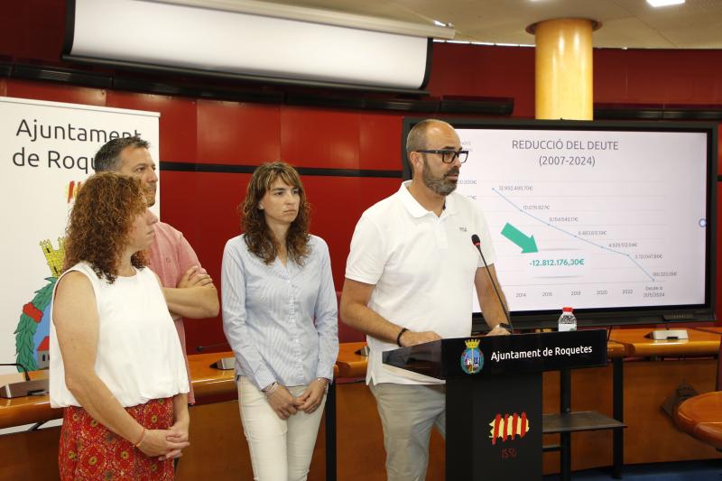 Roquetas ha reducido la deuda municipal en 12.992.499,70 euros desde el año 2007.Esta es la principal conclusión extraída de la comparecencia ante los medios realizada por el alcalde,Ivan Garcia,este jueves en el Salón de Plenos del Ayuntamiento, donde ha detallado el estado de lasituación económica del consistorio a fecha 31 de mayo de 2024,después de las últimas operaciones realizadas.