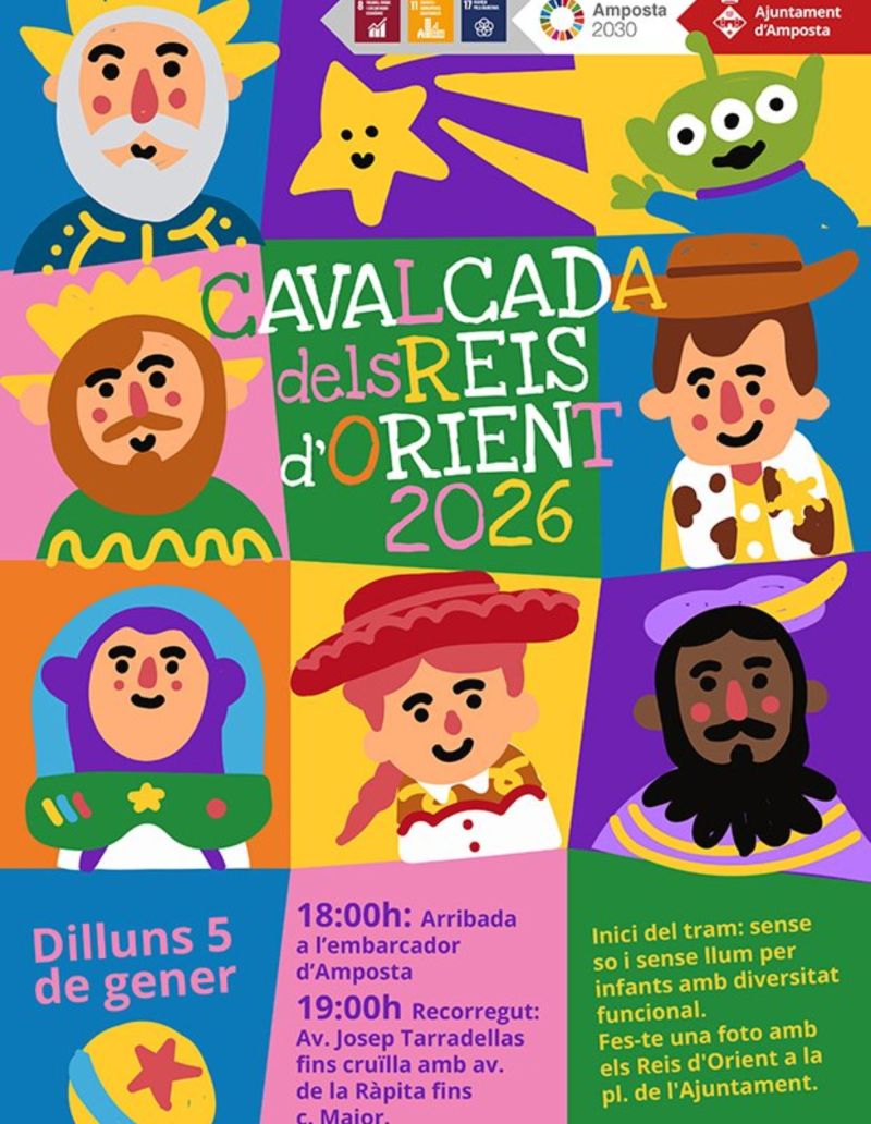 El desfile de este año tendrá como eje temático las películas de Toy Story y contará con la participación prevista de más de 400 personas. En relación con la organización, el alcalde de Amposta, Adam Tomàs, ha manifestado: "Como cada año, queremos agradecer tanto a los particulares que participan con sus vehículos, caballos y tractores, como a las entidades y diferentes áreas del Ayuntamiento que ayudan a Sus Majestades a transportar los paquetes por la ciudad".