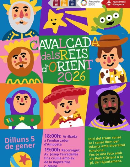 El lunes 5 de enero, a las 18 h, Sus Majestades los Reyes de Oriente desembarcarán en Amposta navegando por el río Ebro a bordo del barco eléctrico 'La Perla'. La llegada se producirá en el embarcadero de la ciudad, donde las niñas y niños podrán presenciar este momento inaugural. Una vez saluden a los niños que les esperen, los Reyes se desplazarán hasta la zona cercana al auditorio municipal para subir a las carrozas que encabezarán la cabalgata.