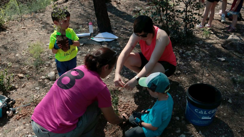 La jornada, de carácter familiar, ha reunido una treintena de participantes de todas las edades, que han llegado en bicicleta después de recorrer la vía verde que conecta los dos municipios. La actividad forma parte de las acciones que se están llevando a cabo para recuperar las zonas quemadas.