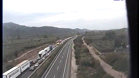La AP-7 entre Amposta y Ulldecona (Montsià) registra unos 12 kilómetros de retenciones este jueves a las 11.15 horas por un camión averiado que ha obligado a cortar uno de los carriles.