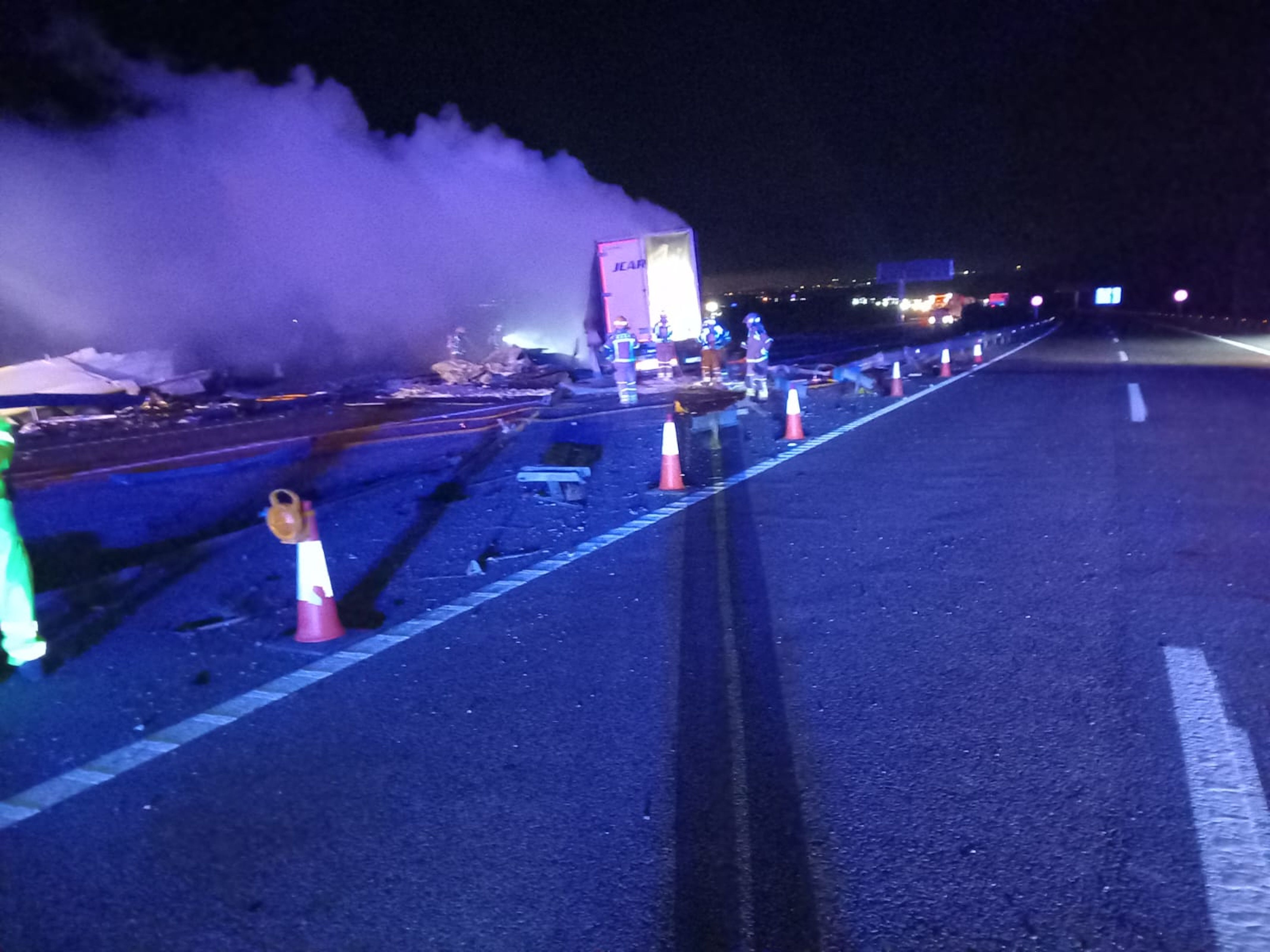 ⚫ La AP-7 está cortada a la altura de L'Aldea en ambos sentidos por un #accidente con tres camiones implicados.