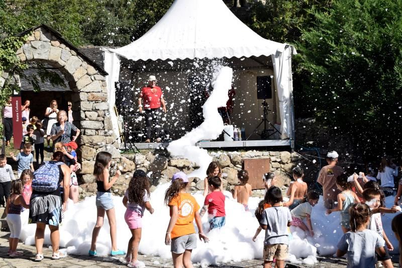 Los niños se lo han pasado pipa con la fiesta de la espuma. La plaza mayor de Santa Coloma ha quedado llena de espuma después de que durante la mañana de este lunes se haya celebrado la primera actividad del día de la fiesta mayor.