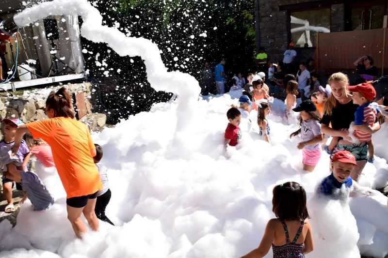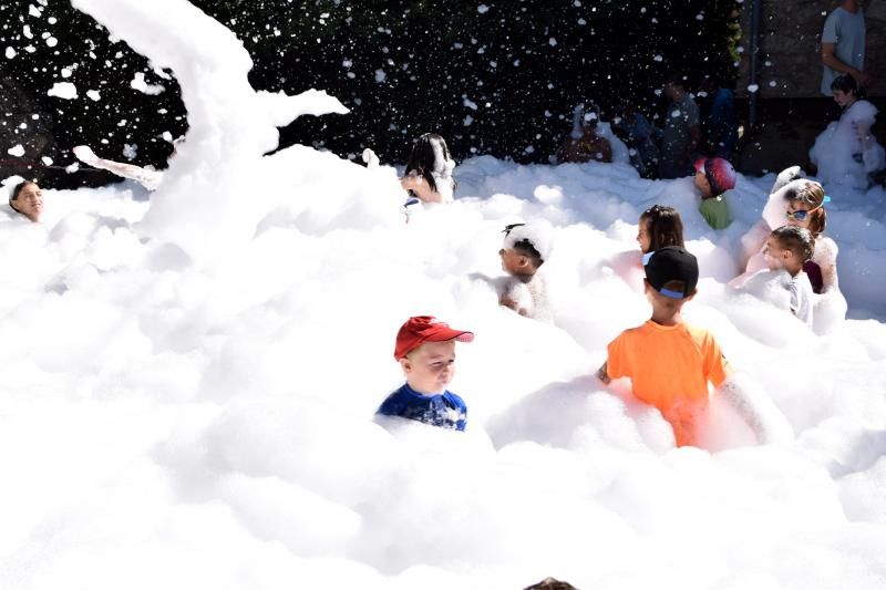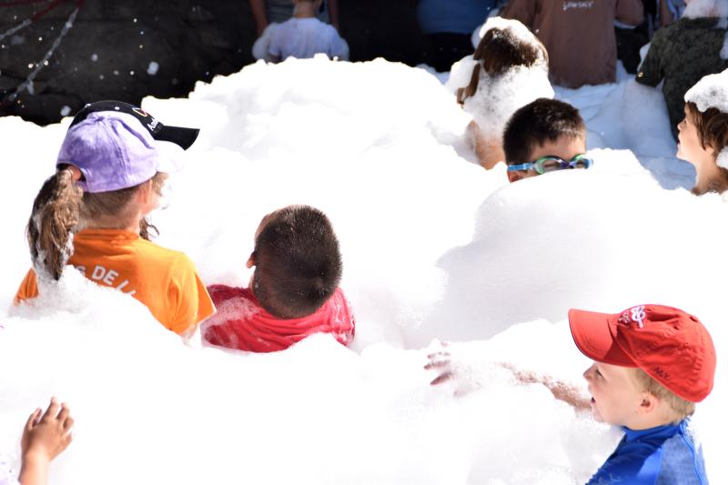 Decenas de niños y niñas se han divertido y han jugado con la espuma, acompañados de música y también de algunos inflables como dados.El tiempo ha acompañado y los participantes se han podido refrescar de una manera diferente.