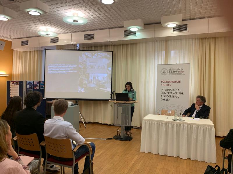 En esta primera jornada de trabajo en la capital austriaca, la ministra Tor ha dado una conferencia sobre la política exterior de Andorra en la Academia Diplomática de Viena. Antes de la conferencia, Tor se ha reunido con el director de la academia, Sr. Emil Brix.