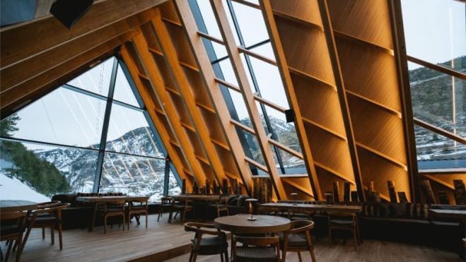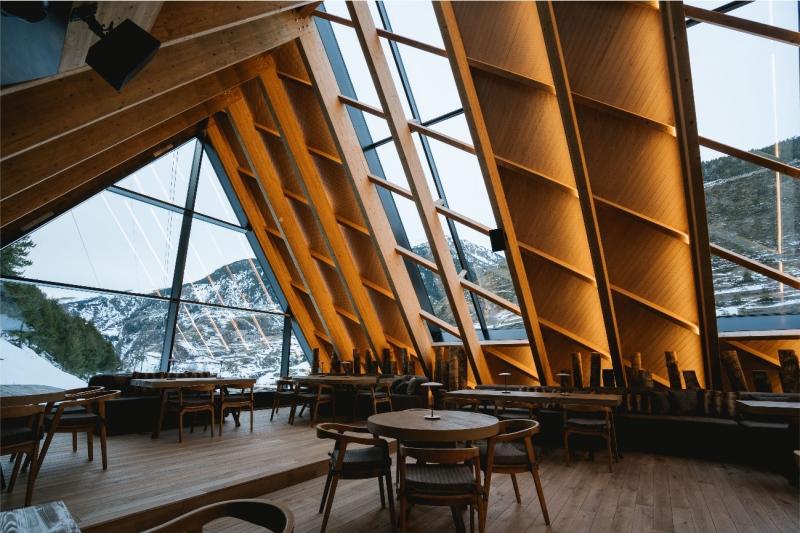 El renacimiento de L'Abarset ha supuesto todo un reto arquitectónico, no solo por su impresionante aspecto visual, sino porque una de las prioridades era que el nuevo referente del après-ski en Europa debía ser un edificio sostenible integrado en el entorno natural.