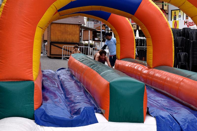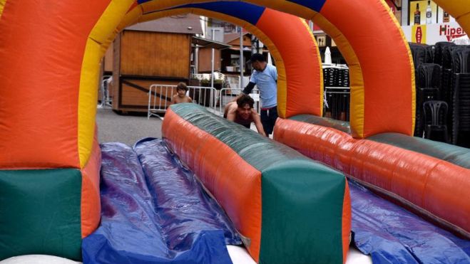 Aunque las temperaturas eran más bien frescas y con el cielo tapado por nubes, algunos valientes se han atrevido a participar en las actividades acuáticas del 'Parque Mulla't'. Un inflable remplazo por una manguera ha gustado mucho en algunos, que han acabado bien muelles porque al final había una especie de piscina que los frenaba del embrague que cogían para deslizar sobre lo inflable.