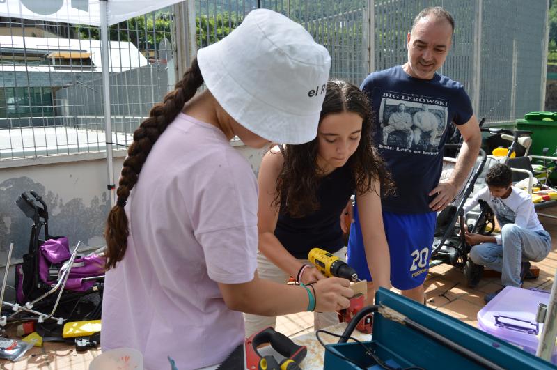 La actividad se ha llevado a cabo a lo largo de esta semana en el Rusco, de la mano de Albert Bulbena, y este viernes las andróminas que han fabricado una docena de jóvenes ya estaban casi terminados. Se han construido seis 'vehículos' y Bulbena destaca muy especialmente que los jóvenes han sido "muy motivados" y que la propuesta es "muy gratificante para ellos, muy instructivo", ya que han tenido que trabajar en equipo, partiendo de la visita al vertedero para recoger los materiales que han empleado, establecer los roles dentro del equipo y "montarse una visión" de lo que querían hacer. Además, esta experiencia les ha servido para "perder el miedo" a las herramientas con las que han tenido que trabajar estos días.