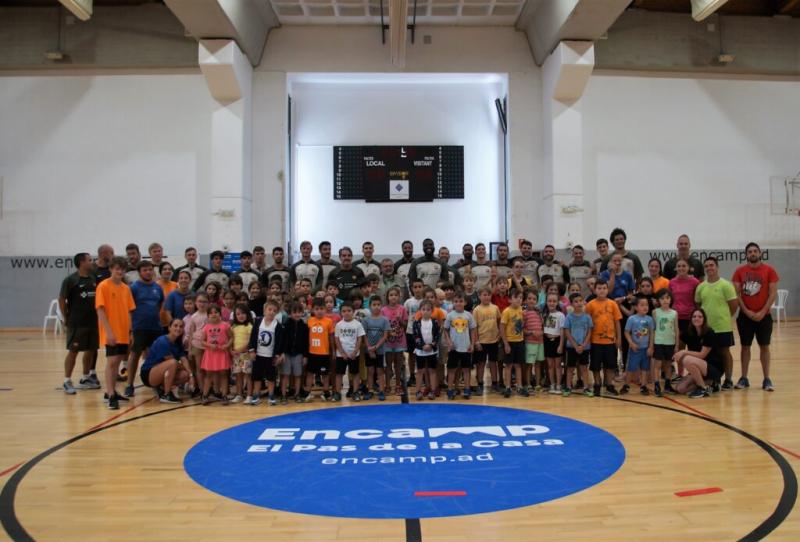 Para terminar, todos los asistentes se han hecho una foto de familia y los jugadores les han firmado unas bolsas promocionales de Encamp a los niños. También les han hecho entrega de una camiseta y un balón firmados en recuerdo de su estancia, que de forma ininterrumpida vienen repitiendo desde 2018 en Encamp.