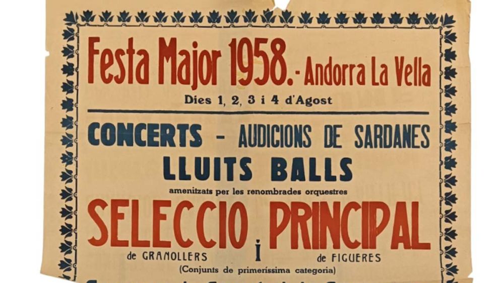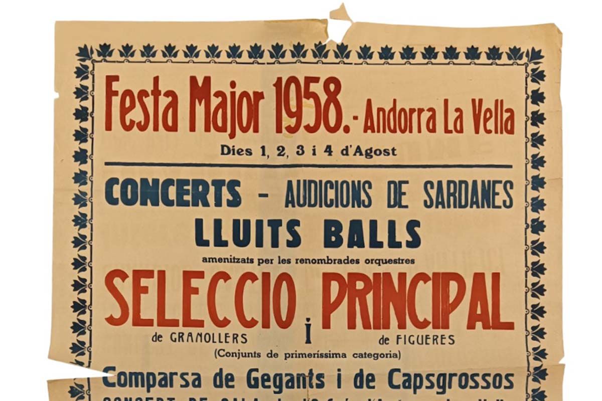 En cuanto a la propuesta ganadora, el cartel de la Fiesta Mayor de Andorra la Vieja de 1958, que forma parte del fondo general de la Biblioteca Nacional, muestra la riqueza cultural del momento, en el que la música, las tradiciones y el deporte tenían un papel protagonista. De entre todas las actividades, destacan el concierto de la Orquesta Selección de Granollers, la comparsa de gigantes y cabezudos, el tradicional baile del contrapaso o un festival de gimnasia con la participación del gimnasta de élite Joaquim Blume.