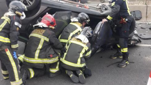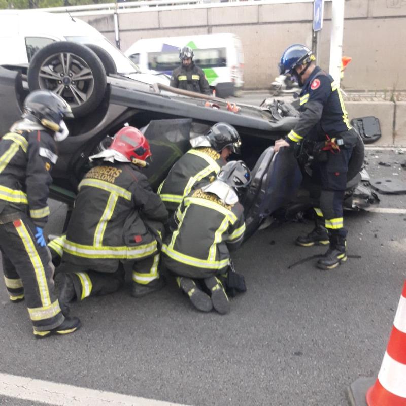Dos personas han resultado heridas en un accidente en la Ronda Litoral cuando el vehículo en el que viajaban ha volcado, según han informado los Bomberos de la Generalitat y de Barcelona. El siniestro se ha producido muy cerca de la incorporación a la C-32.