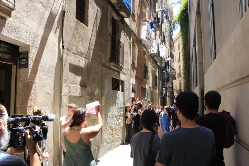 El desahucio de una familia con un bebé de días y otro menor de cuatro años en el distrito de Ciutat Vella de Barcelona ha quedado aplazado hasta finales de septiembre. La mujer, Sharon, llegó a Barcelona desde Italia hace un año y entró a vivir a un piso situado en el número 8 de la calle Tragí con su pareja y su hijo mayor por recomendación de una supuesta propietaria en octubre de 2023, según el Sindicato de Vivienda del Caso Antiguo.