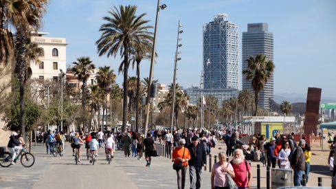 El buen tiempo ha sido otro de los grandes protagonistas. Las playas de la Barceloneta se han llenado de visitantes que han aprovechado el sol para pasear, tomar algo o incluso tumbarse en la arena.
