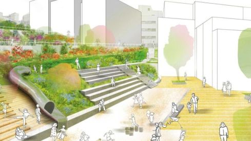 El ámbito urbanizado dispondrá de un espacio abierto multifuncional donde se ubicarán juegos infantiles combinados con vegetación y bancos pensados tanto para el descanso como para actividades comunitarias al aire libre. Las terrazas naturales acogerán huertos urbanos distribuidos en dos plataformas mientras que una terraza superior estará destinada a merenderos.