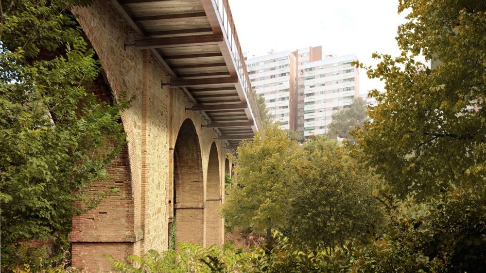 El proyecto que ahora ha aprobado inicialmente el Ayuntamiento de Barcelona plantea la incorporación de una pasarela para peatones que dé un nuevo uso al acueducto, resolviendo con la máxima economía de esfuerzos la nueva conexión accesible entre dos barrios vecinos que presentan deficiencias de conectividad entre ellos. La propuesta ha tenido en cuenta las diferentes limitaciones y potencialidades, como por ejemplo preservar el funcionamiento de la tubería de agua, de manera que se ha optado por la opción que ofrecía un mejor equilibrio entre la afectación estructural, el impacto visual y la relación con el patrimonio, entre otros.